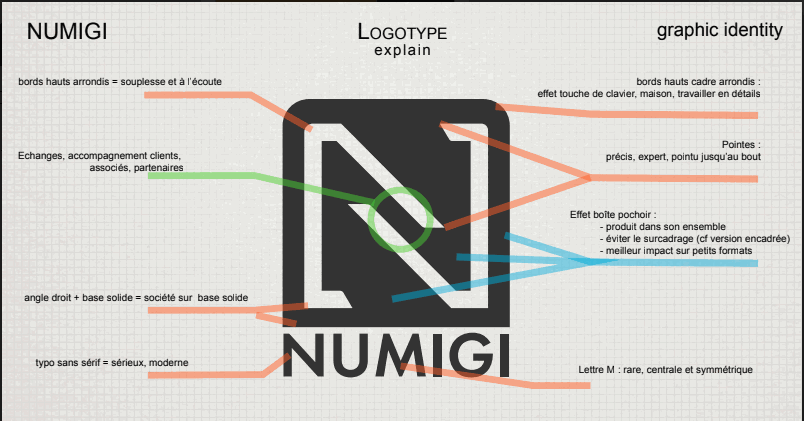 Suite aux différentes idées, des Numigiens fondateurs, communiquées à une agence spécialisée, une proposition est faite et une première esquisse est née.