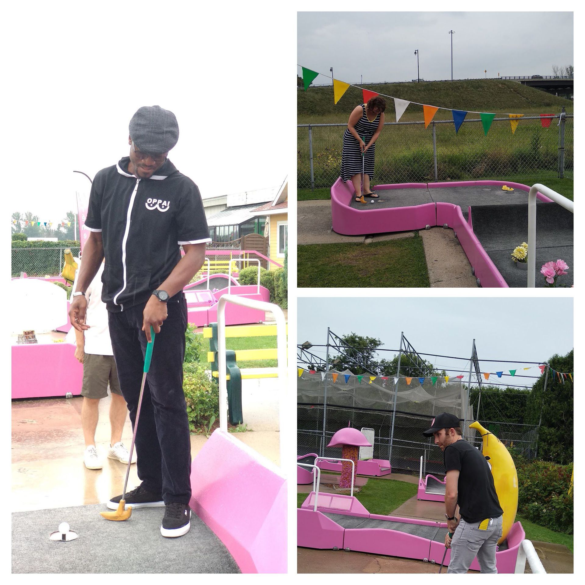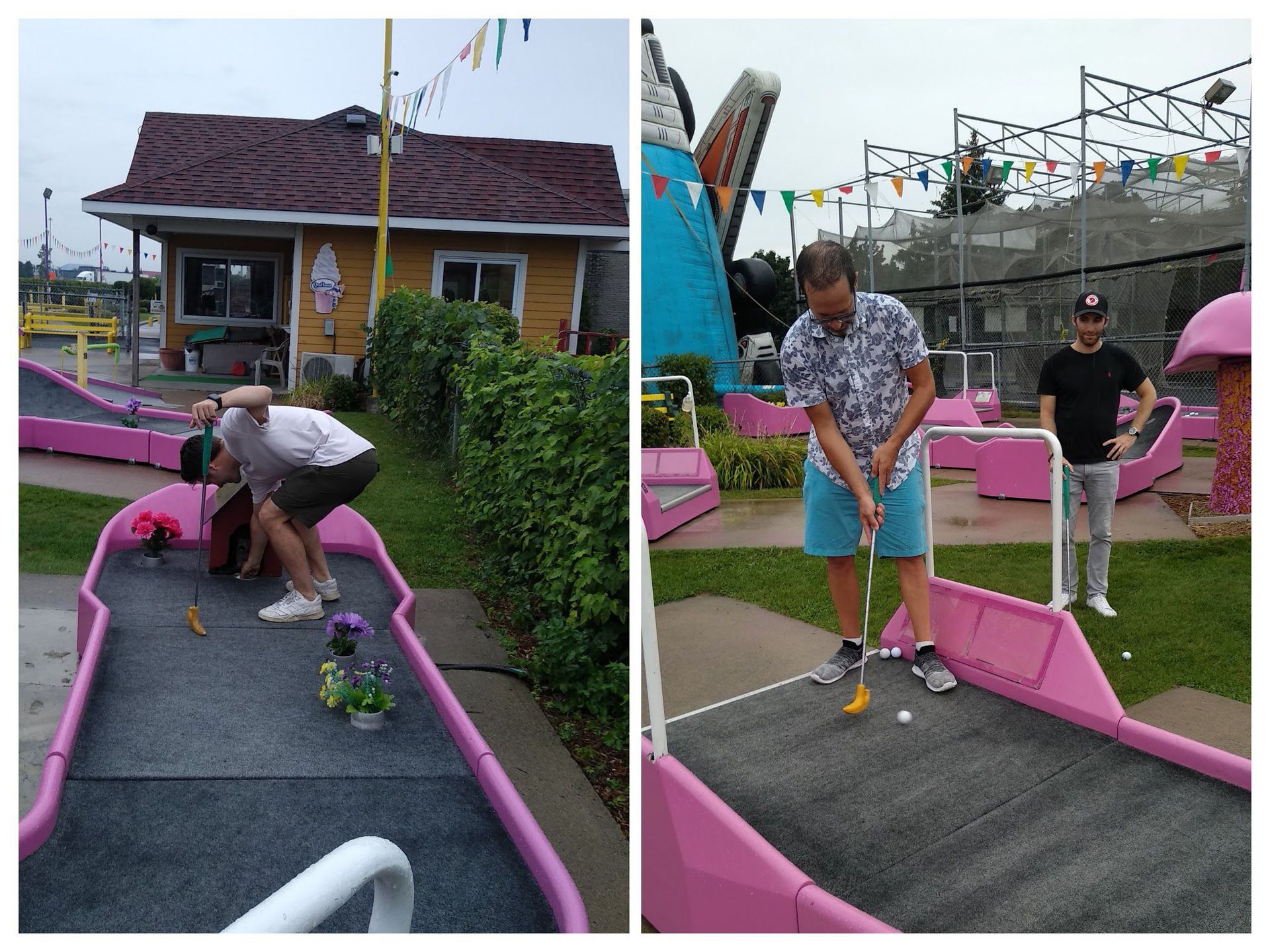 Si vous ne connaissez pas le rigolfeur, c’est un minigolf farces et attrapes. Par exemple, des surprises vous attendent au début du parcours ou lorsque vous ramassez votre balle dans les trous.