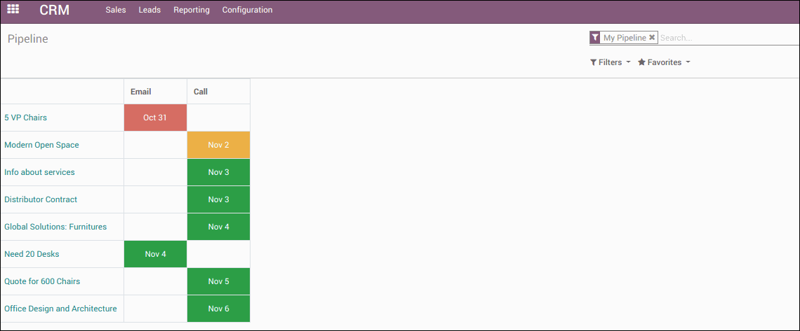 Le flux de travail ainsi optimisé permet aux utilisateurs de se concentrer sur leurs affaires plutôt que sur la configuration et la manipulation de leurs outils. C'est le Graal du mouvement GTD (Getting Things Done) . L'optimisation est facilitée par les fonctionnalité transversales — comme “Activités”, disponible dans la plupart des formulaires — et les indicateurs statistiques présents dans toutes les applications clés.