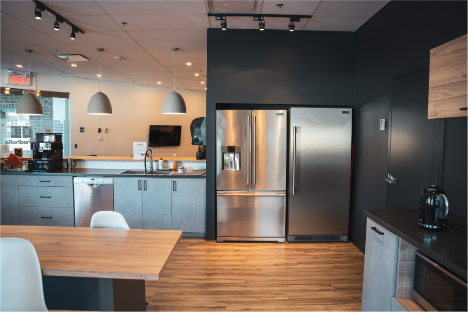 Nos bureaux chez Hedhofis offrent une cuisine toute équipée et des espaces de détente accueillant et conviviaux.